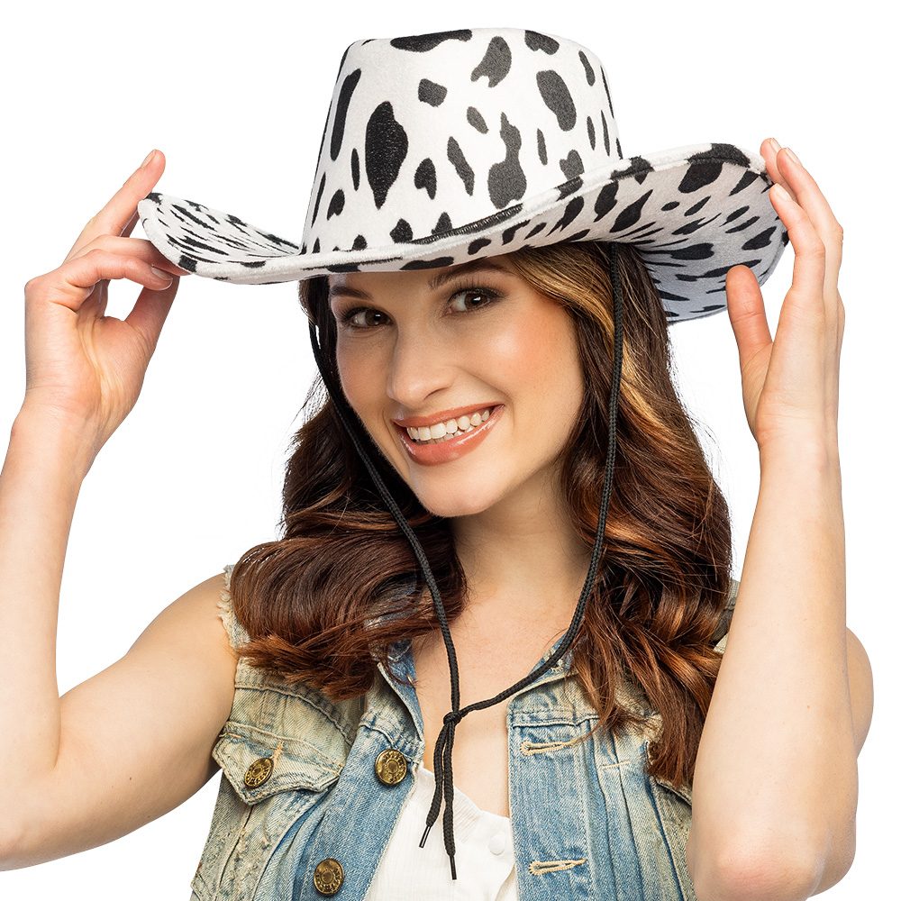Cowboyhoed koe print is een populaire keuze voor feestgangers die willen opvallen met een vrolijke en unieke uitstraling. De speelse print zorgt voor een echte blikvanger.