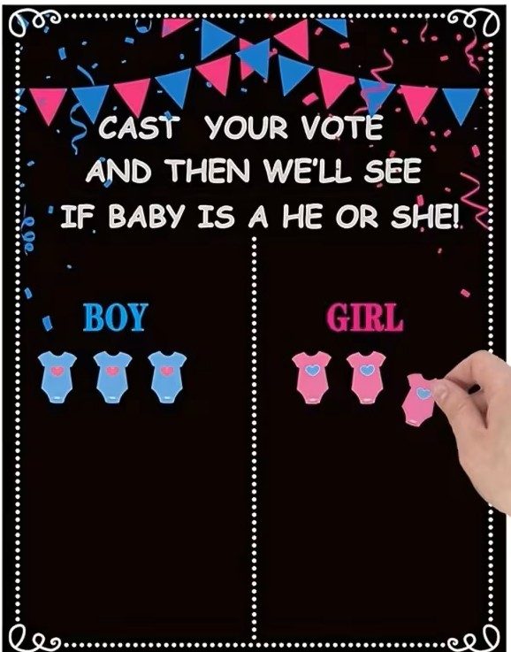 Laat de gasten op jouw gender reveal party meebeslissen! Wordt het een jongen of een meisje? Met deze interactieve “Cast Your Vote” stembord set creëer je direct een spannende en gezellige sfeer. Het is de perfecte ijsbreker waarbij iedereen zijn voorspelling kan achterlaten op het stijlvolle schoolbord-stijl station.