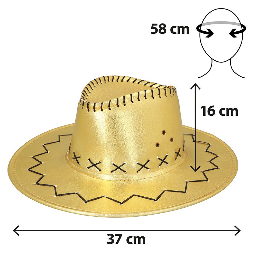 Gouden cowboyhoed is dé perfecte keuze voor wie wil opvallen tijdens een festival, themafeest of carnaval. De glanzende afwerking zorgt voor een opvallende en feestelijke uitstraling.