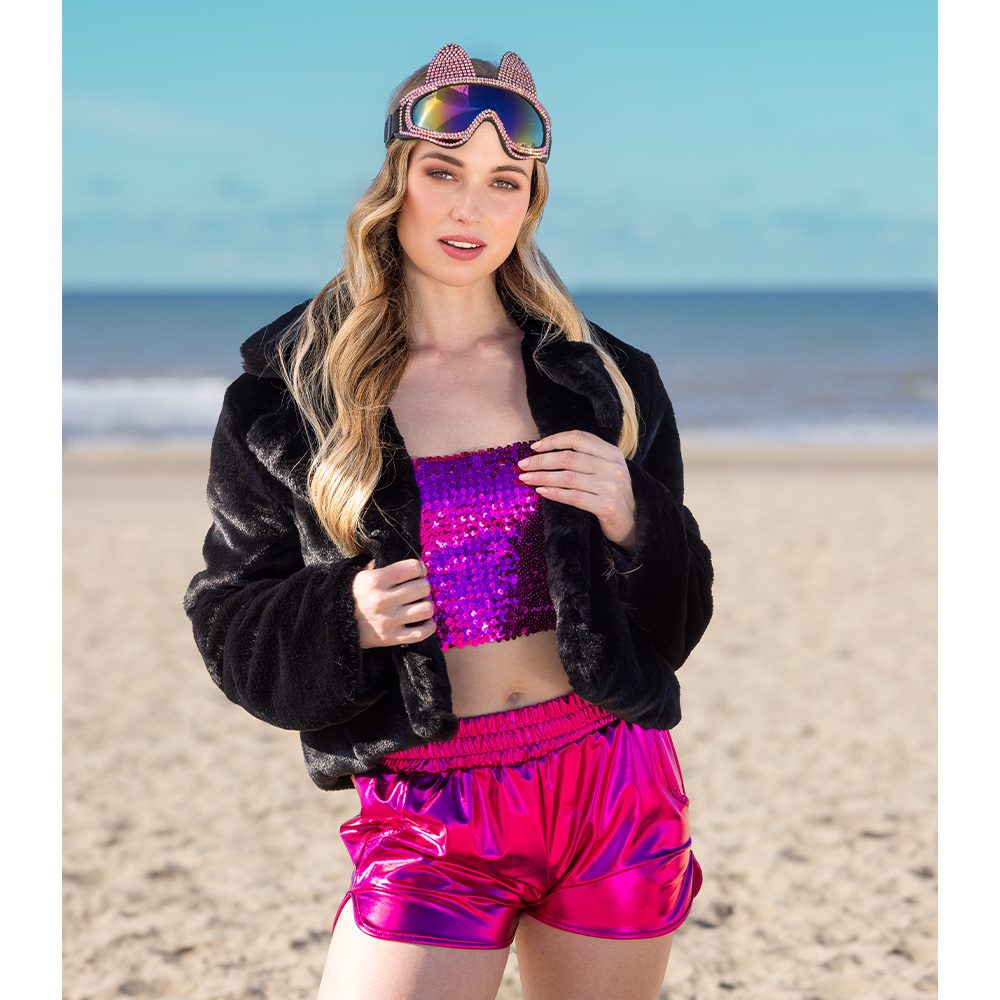 Fuchsia metallic hotpants voor een opvallende party look 💖✨