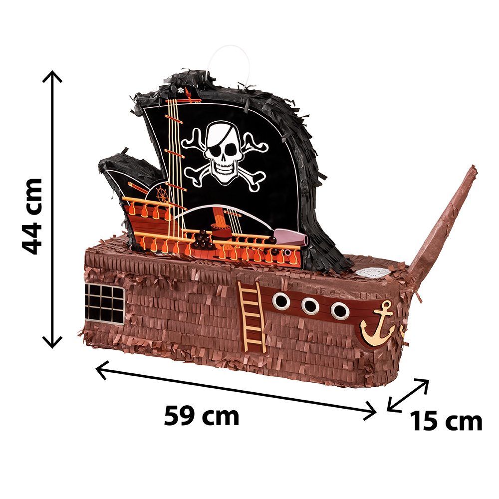 Vul het schip met snoep, munten of kleine cadeautjes en laat de kinderen als echte piraten op schattenjacht gaan. Dankzij het stevige papier en de handige ophanging is deze piñata perfect voor actief feestplezier.