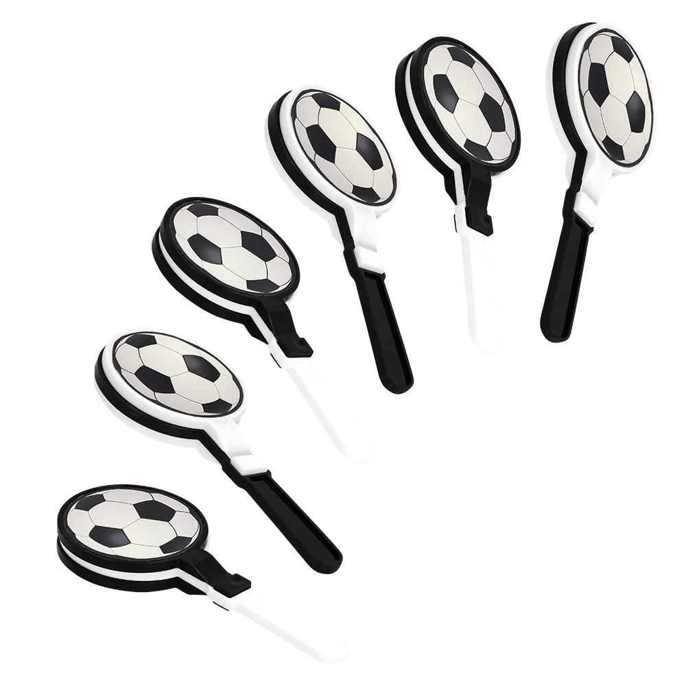 De handklappers hebben een opvallend voetbal design en zijn geschikt voor zowel kinderen als volwassenen. Ideaal om te gebruiken tijdens spannende wedstrijden of als leuke toevoeging aan een voetbal themafeest.